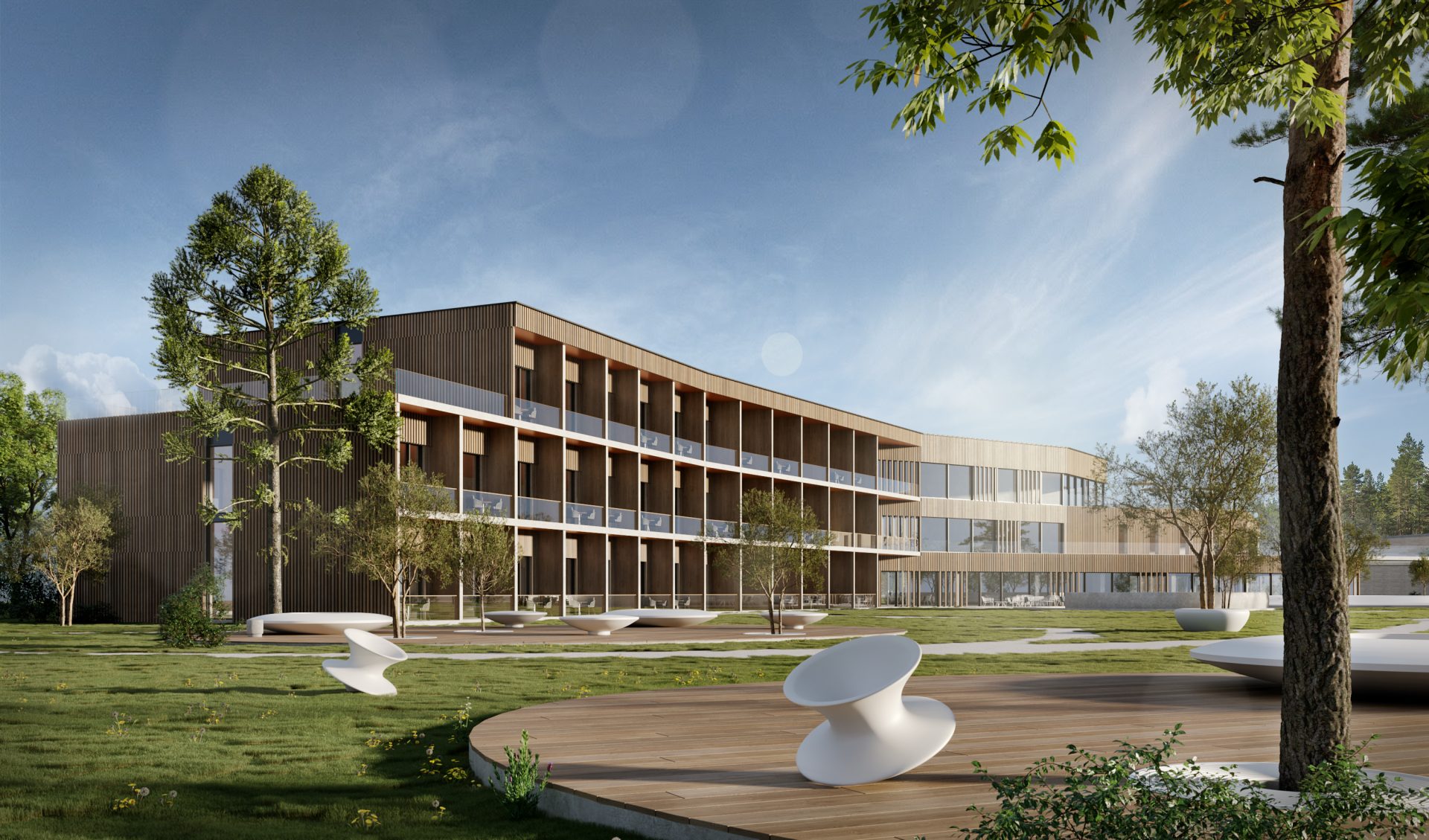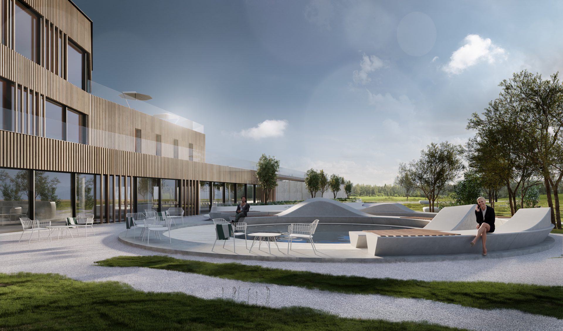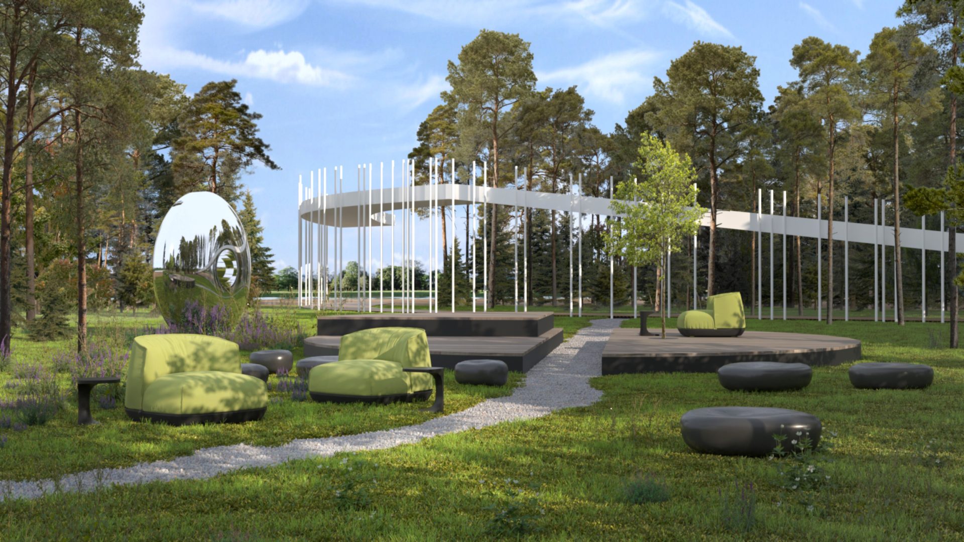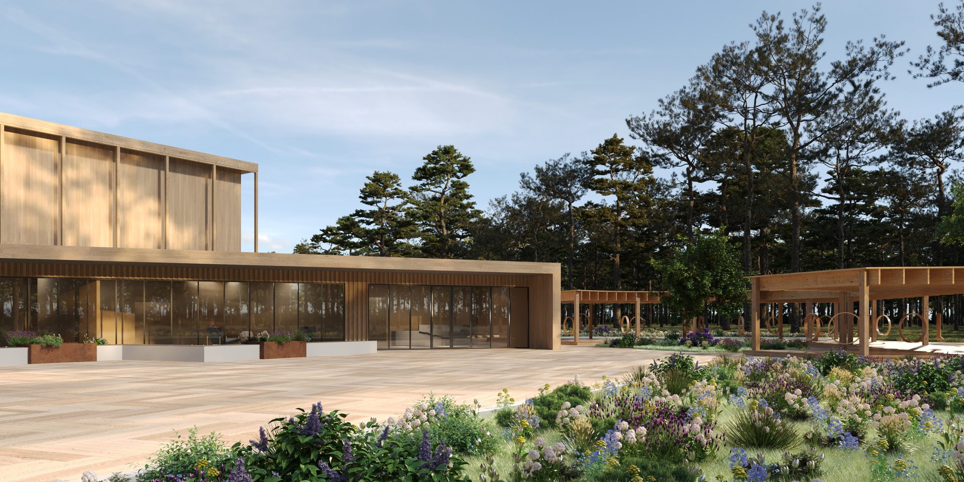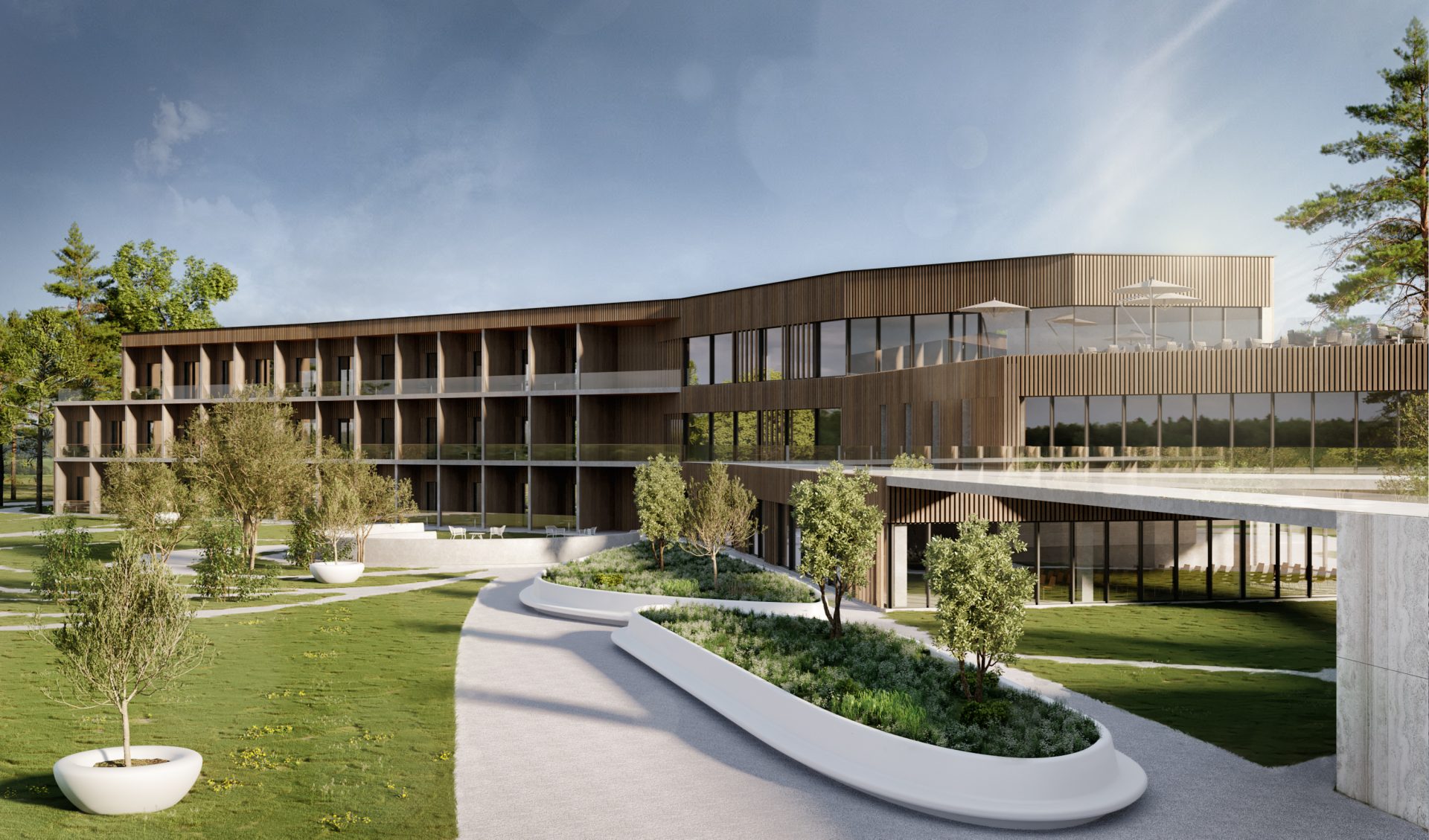 Ландшафт. Основной принцип — ландшафт как терапия. Вместо традиционного садового дизайна используются продуманные системы: луговые травы, местные кустарники, теневые зоны. Интегрированные маршруты включают терренкуры, деревянные настилы в лесу и водные дорожки у спа-зоны. Подход «мягкой руки» минимизирует вмешательство и сохраняет биоразнообразие.