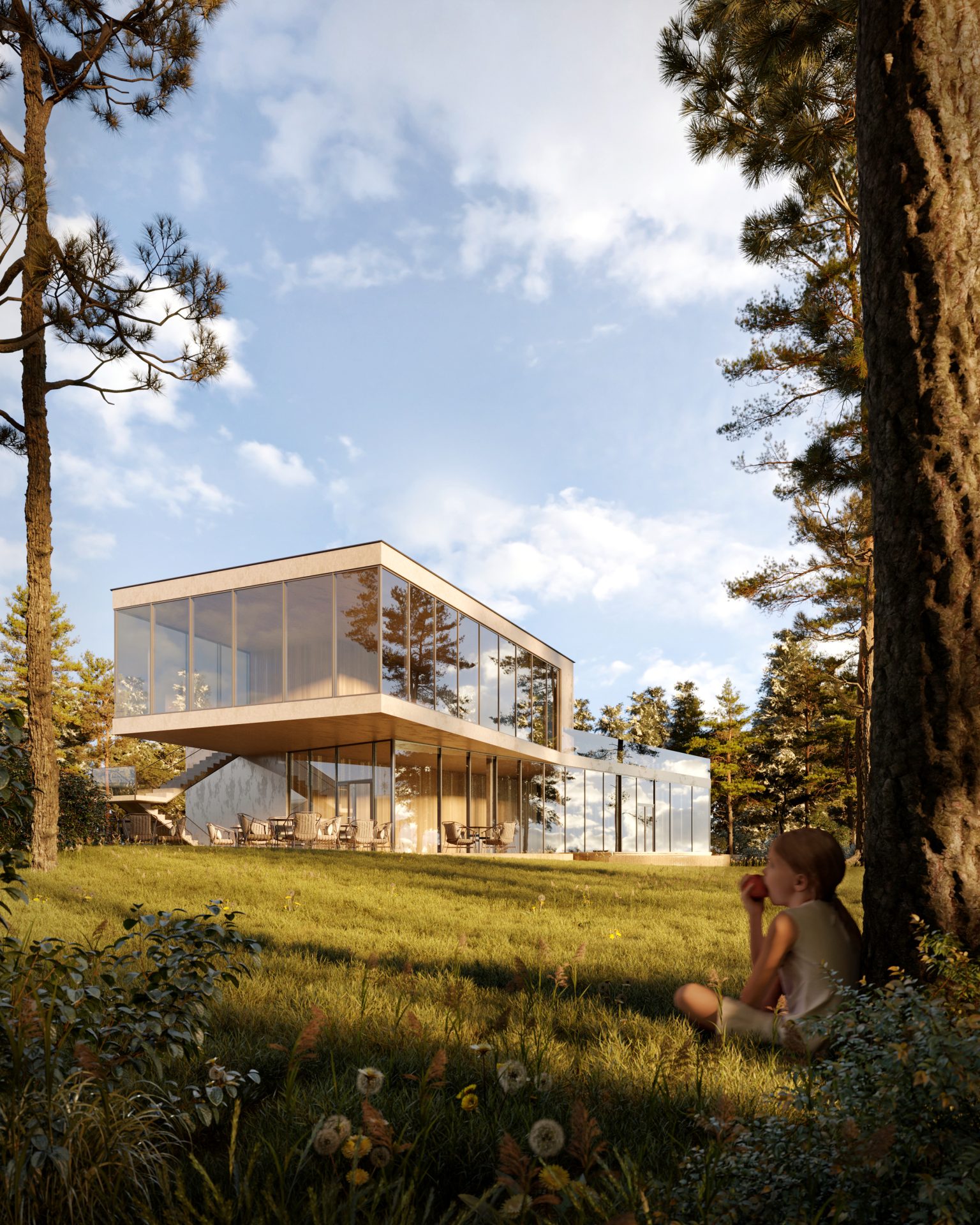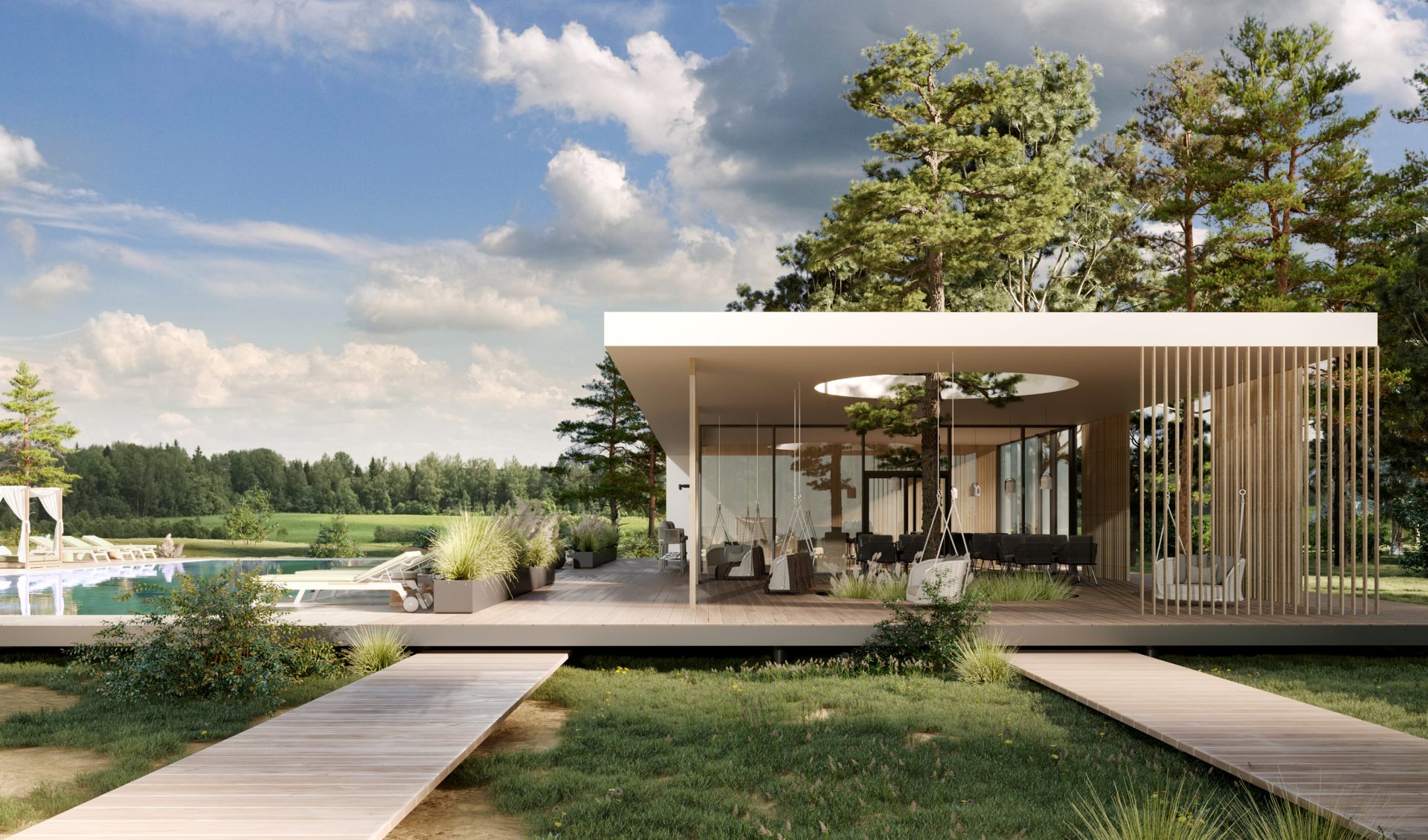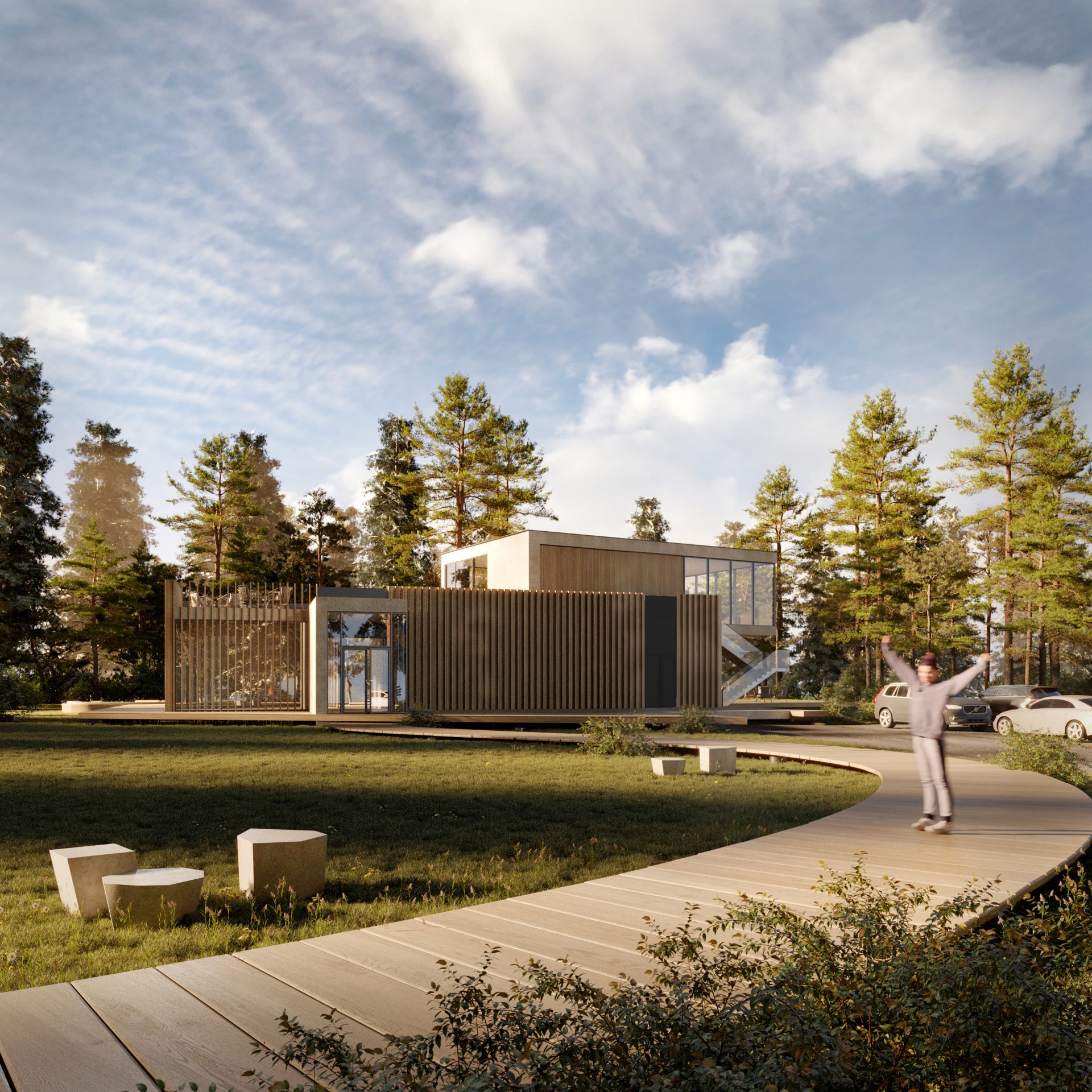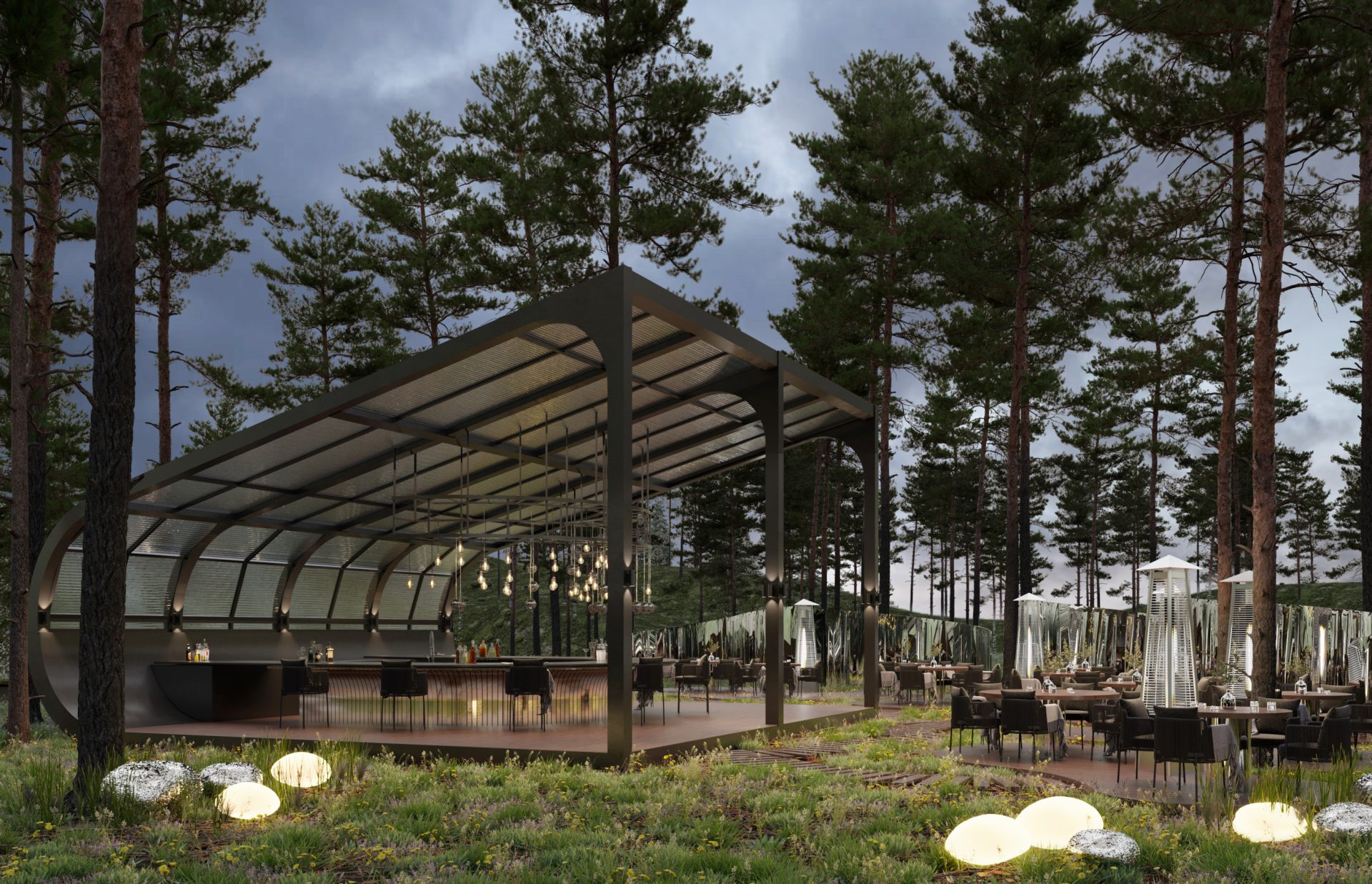 Архитектура и среда. Концепция комплекса основана на рассеянных объемах, встроенных в природный рельеф. Гостиничные номера, спа, рестораны, оздоровительный центр и приватные виллы словно растворяются в окружении. Натуральные материалы — дерево, камень, стекло — подчеркивают единство с природой. Горизонтальные линии, мягкие формы и панорамные виды открывают пространство к Истринскому водохранилищу.
